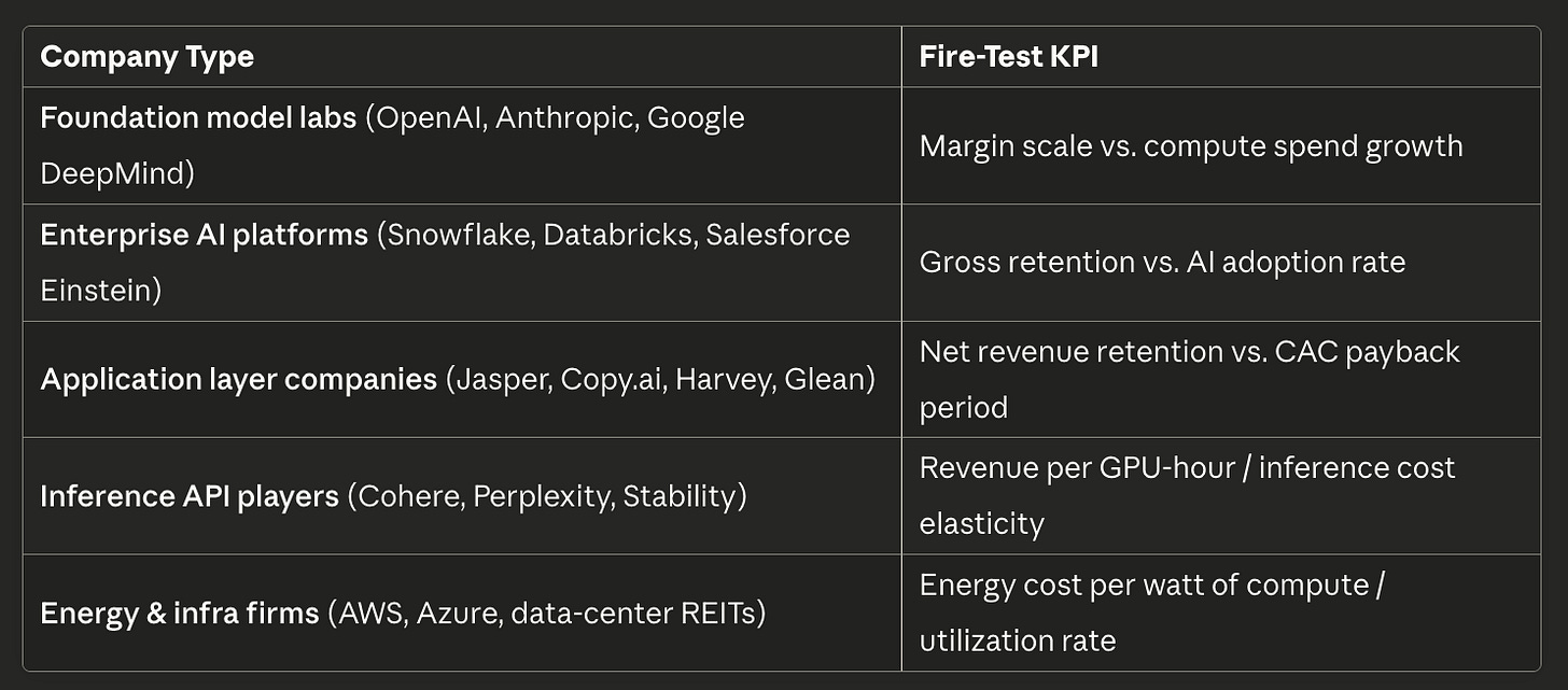 uses the metaphor of AI as a wildfire (vs. a bubble) to take stock of the tech landscape. Fun fact from this one: AMZN traded at ~$5/share in 2000 before drawing down 95% to ~$0.30/share, only to then return an aggregate ~720x over the next 20 years (the biggest swing by an order of magnitude of any of the Web 1.0 and 2.0 public co’s he analyzes). Dion’s breakdown of Fire-Test KPIs by different players in the AI value chain is a sharp lens for thinking about durability. Worth reading the whole thing.